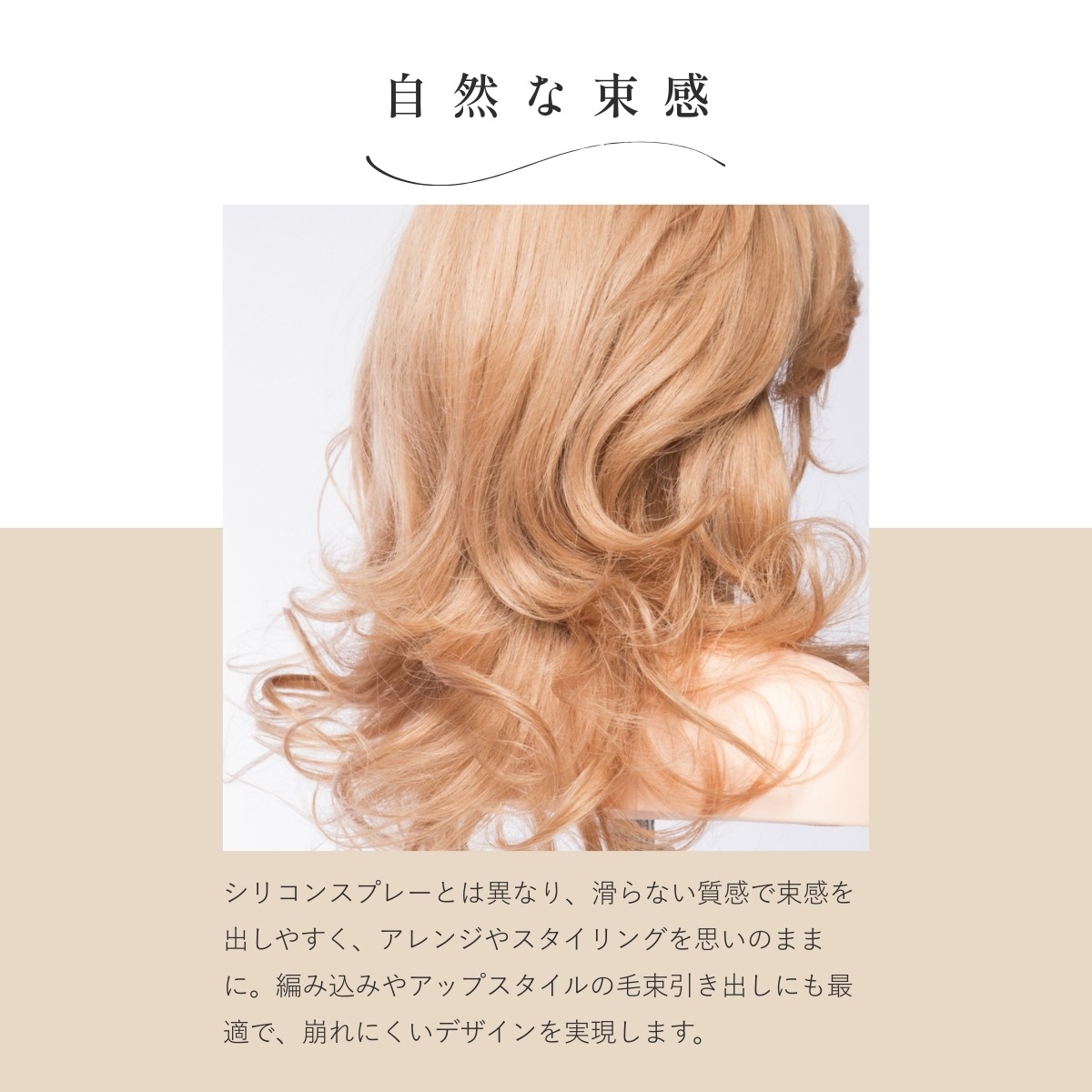 何もつけていない髪に使用すると自然なツヤとまとまり感を演出します。