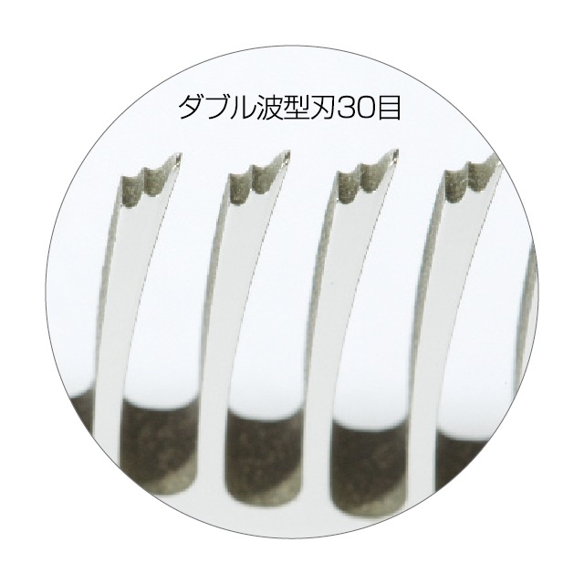 刃形状:ダブル波型刃30目(カット率:15%~25%)/ 曲刃(500R)